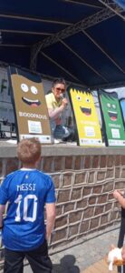 W tym roku odpady można było wymienić za kwiaty ozdobne, krzewy i drzewka owocowe albo zabawki, czy wiaderka na bioodpady. Dzieci aktywnie uczestniczyły w warsztatach recyklingowych (Abrys), gdzie można było pomalować torby, zbudować i pomalować budki lęgowe, wykonać lampion ze słoika, zagrać w konkursie koło fortuny „W koło odpadów”, czy malować obrazy nicią. Dmuchane place zabaw, zjeżdżalnia, malowanie buziek, robienie tatuaży, balonowe show – to wszystko było dostępne dla naszych najmłodszych mieszkańców bezpłatnie. Magik Paulo zaczarował dzieci na scenie swoimi sztuczkami i trikiem z panią zamykaną w szafie.